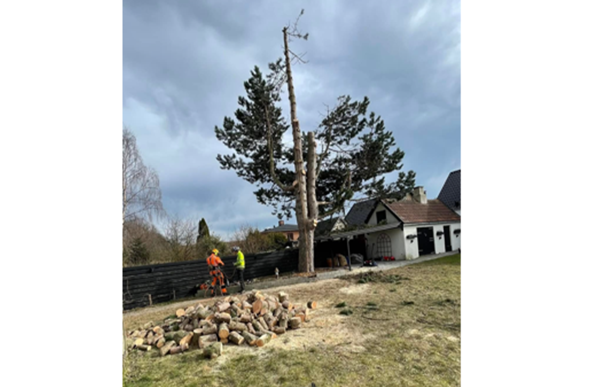 Se vores professionelle team i aktion, når vi fælder selv de mest udfordrende træer sikkert og effektivt.
